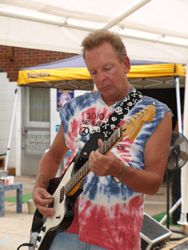 Tools of the Trade: I currently own 10 or 11 guitars with the recent acquisition of a Fender Jagmaster – a cross between a Jaguar and Jazzmaster. The others are: 1960 Gibson LP III 1970 Gibson LP Custom 1974 Gibson SG 1976 Gibson Flying V 1980 Gibson ES335 1971 Fender Telecaster 1999 Fender Jagmaster 2000 Fender Squire Strat 1980 Silver Street Custom Made 1982 Baby Dean Explorer 1974 Guild D25 Acoustic I’m now using a Fender Stage 160, although over the years I’ve used everything from a Marshall stack to a roll and pleated Kustom. I also use an H & K pre amp.